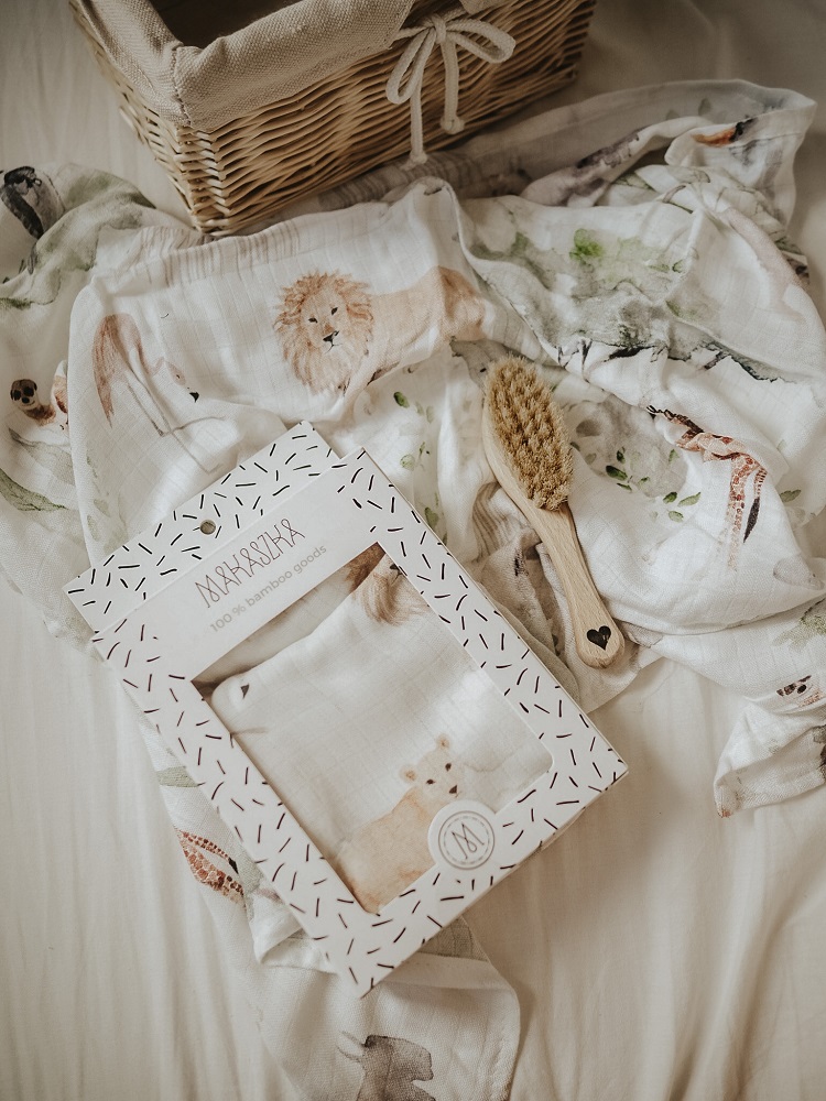Der Wickel aus 100% Bambus ist auch perfekt als stilvolles Geschenk für die kleinen Kinder unserer Freunde, für eine Babyparty und jeden anderen schönen Anlass.