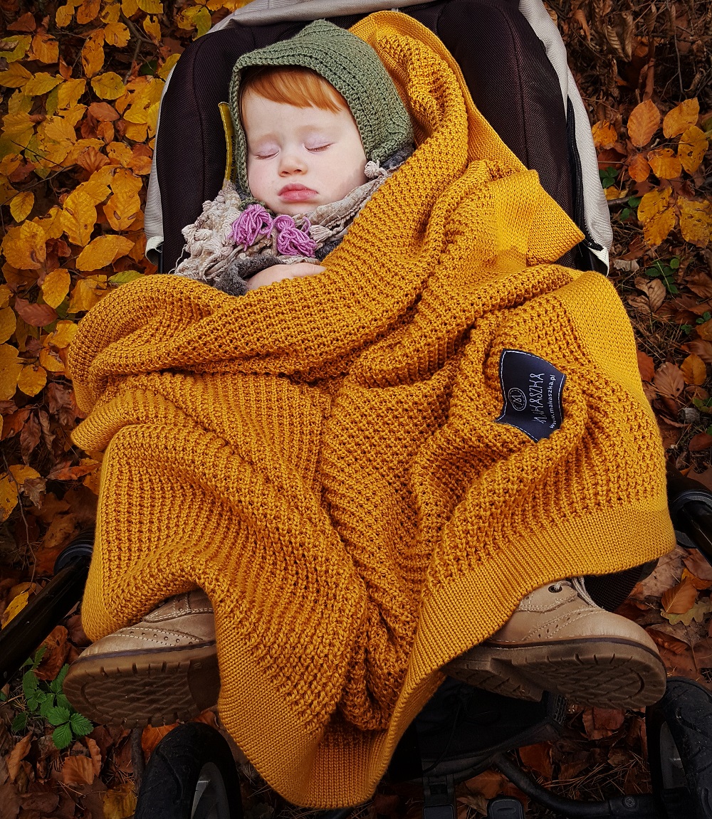Es ist perfekt vom ersten Augenblick des Lebens bis hin in ein Kinderbett, einem Kinderwagen, einem Autositz und überall dort, wo eine Decke nützlich ist. Eine gestrickte Decke ist ein unverzichtbares Element jeder Babyausstattung. Nach dem Falten ist es klein, so dass es immer zur Hand sein kann.