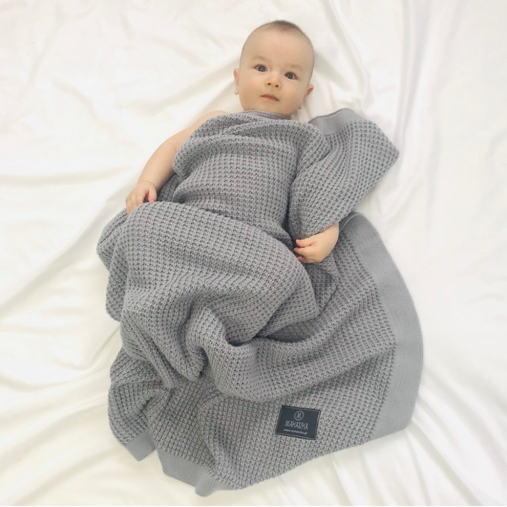 Es ist perfekt vom ersten Augenblick des Lebens bis hin in ein Kinderbett, einem Kinderwagen, einem Autositz und überall dort, wo eine Decke nützlich ist. Eine gestrickte Decke ist ein unverzichtbares Element jeder Babyausstattung. Nach dem Falten ist es klein, so dass es immer zur Hand sein kann.