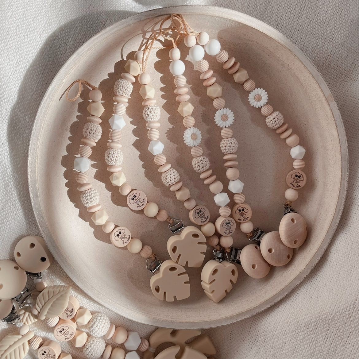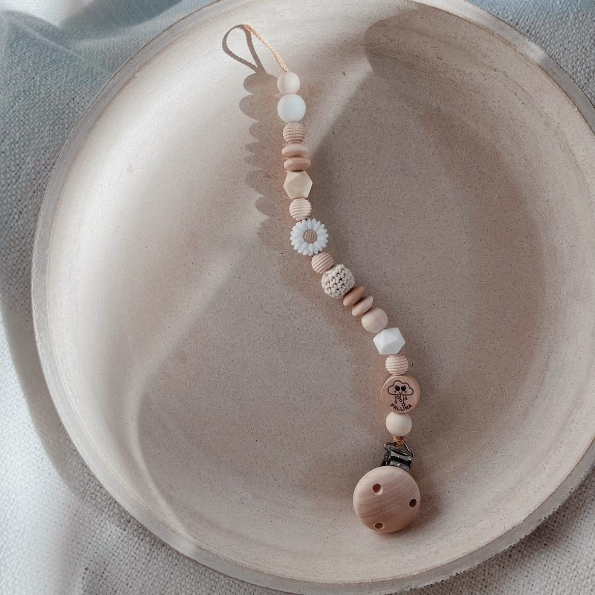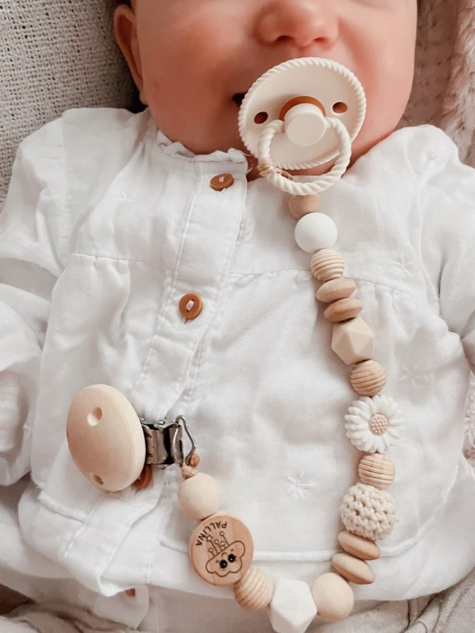 Wunderschöne Daisy Beige Schnullerkette von PALLINA
