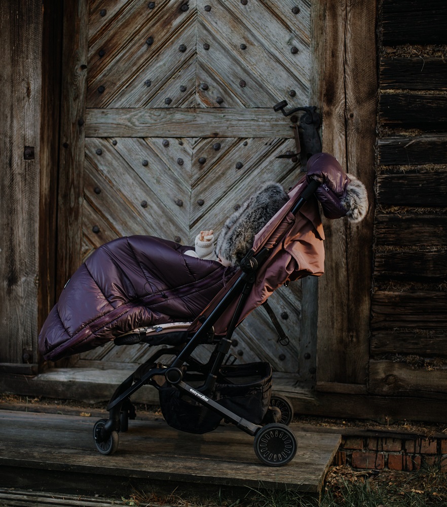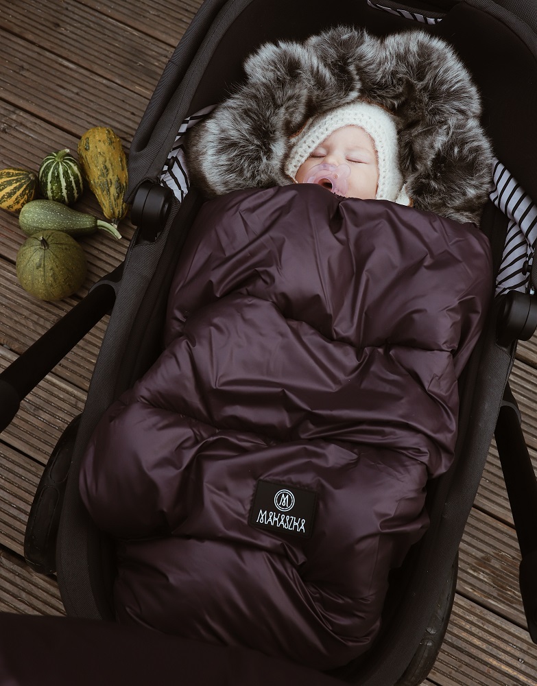 Der Premium-Schlafsack kann mit verschiedenen Makaszka-Produkten kombiniert werden, wodurch eine einzigartige, farbenfrohe Anordnung des Kinderwagens entsteht.