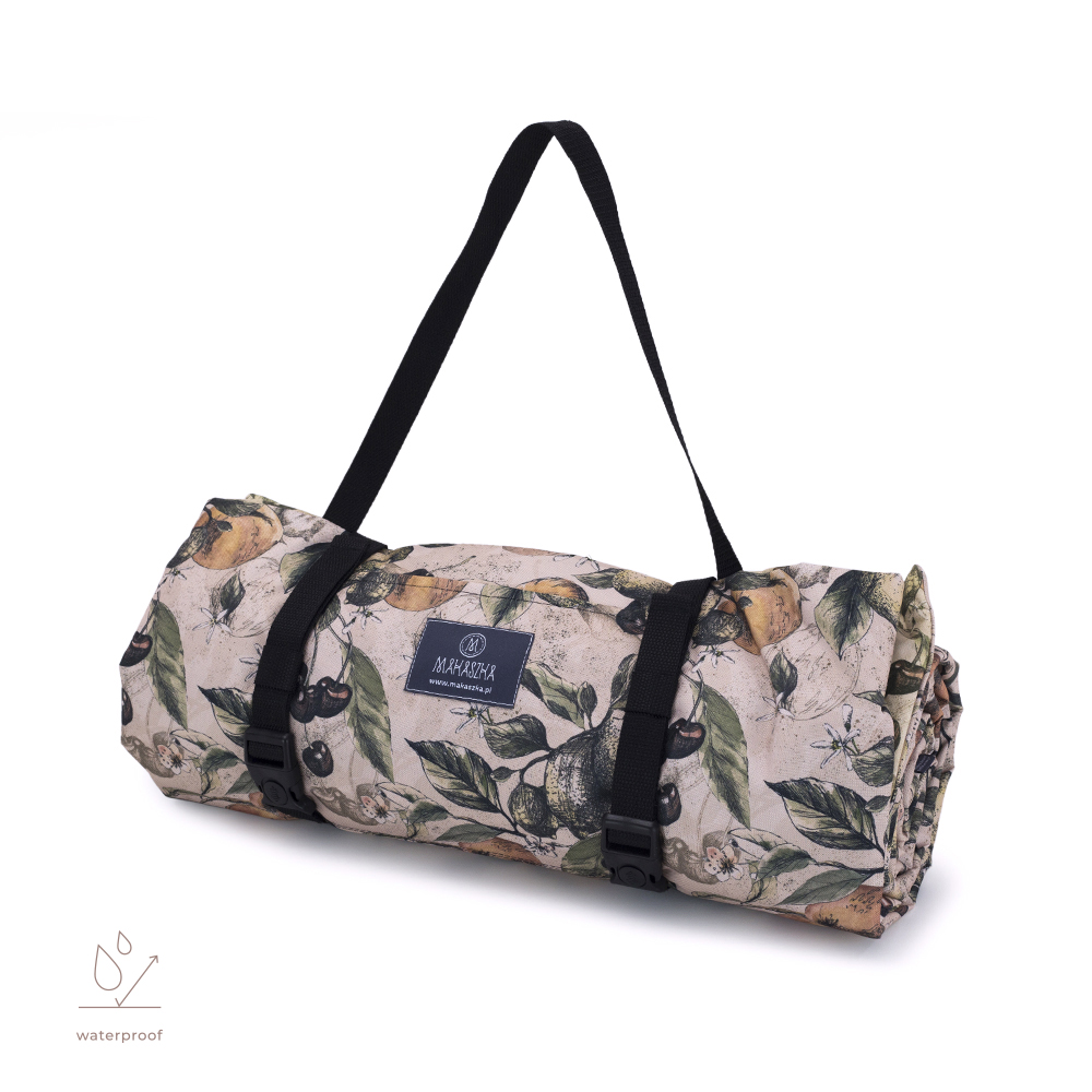 Nach dem Aufrollen der Decke und Befestigen der Gurte entsteht eine bequeme Tasche zum Umhängen mit einer zusätzlichen Tasche für praktische Kleinigkeiten. Eine Seite der Picknickdecke ist aus hochwertiger Baumwolle gefertigt. Die Mittelschicht besteht aus leichtem Vlies mit Silikonschutzschicht, das für Weichheit und Isolierung auf einer harten Oberfläche sorgt. Der untere Teil ist ein robustes und imprägniertes Gewebe, dank dem selbst Morgentau oder nasser Sand den Spaß nicht stören.